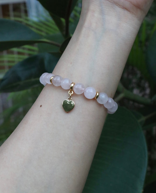 Rose Quartz Bracelet With Heart Charm